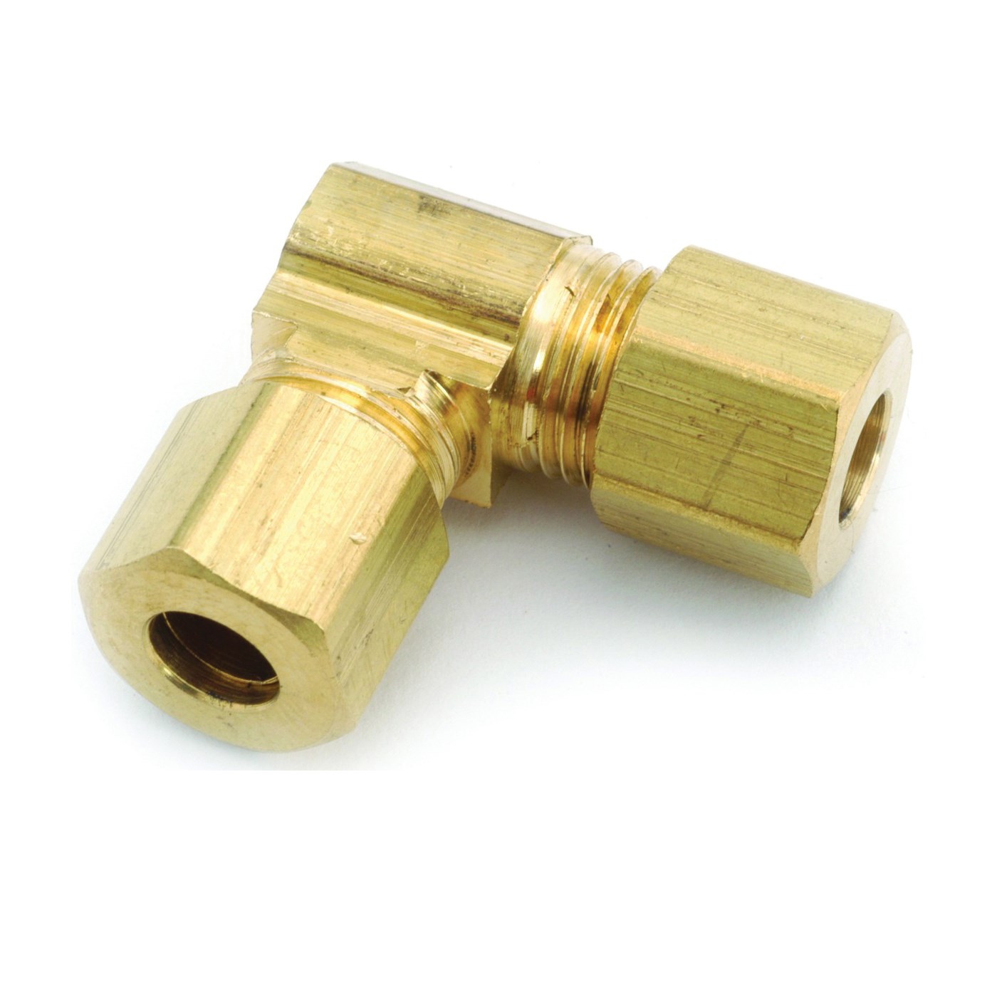 ANDERSON METALS LEAD FREE BRASS COMPRESSION ELBOW - 1/4"This Anderson Metals lead free brass compression elbow creates a 90-degree turn in your tubing run. Both ends feature compression connections for use with copper, brass, aluminum, or plastic tubing. No soldering required. Meets all requirements for lead free installation.