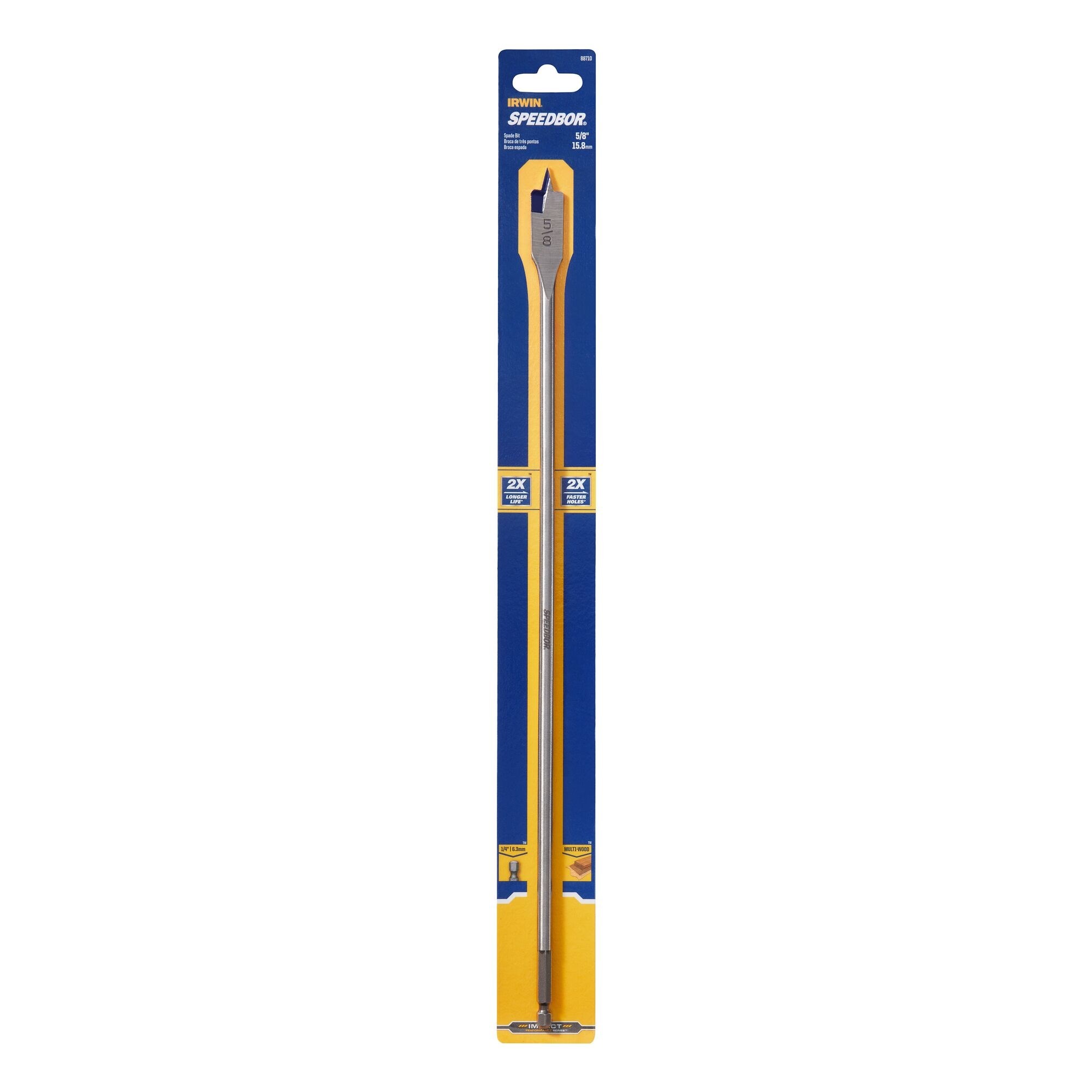 IRWIN SPEEDBOR 88XL EXTRA-LONG WOOD BORING BIT - 5/8"Extra-long 16" spade bit with patented Blue-Groove design for fast chip removal. Carbon steel construction with reinforced hex shank for use with drills and impact drivers.