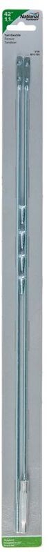 Use to brace, raise, or eliminate sagging on screen or storm doors. Threaded steel rods will not rust to aluminum turnbuckle body. Zinc finish.