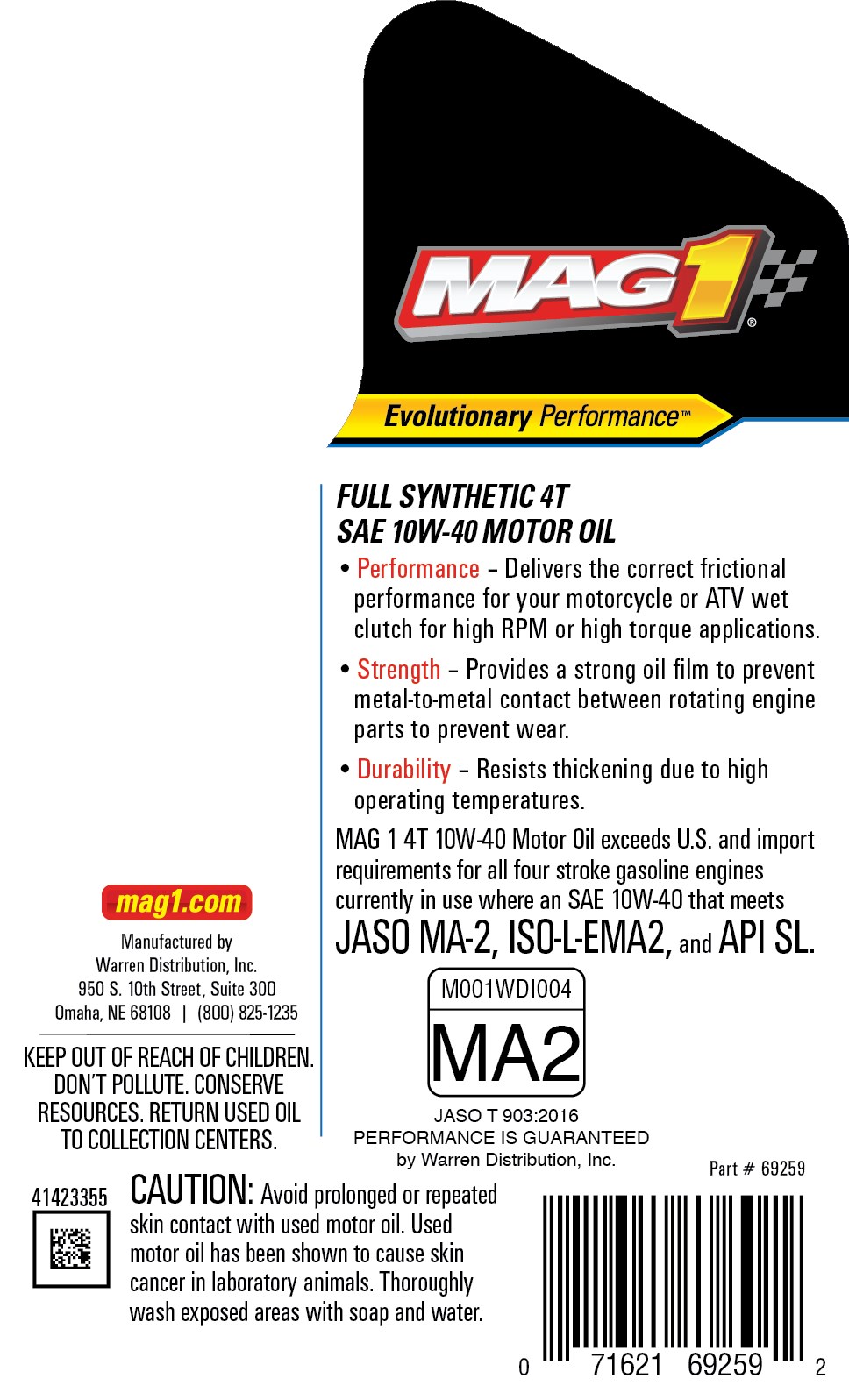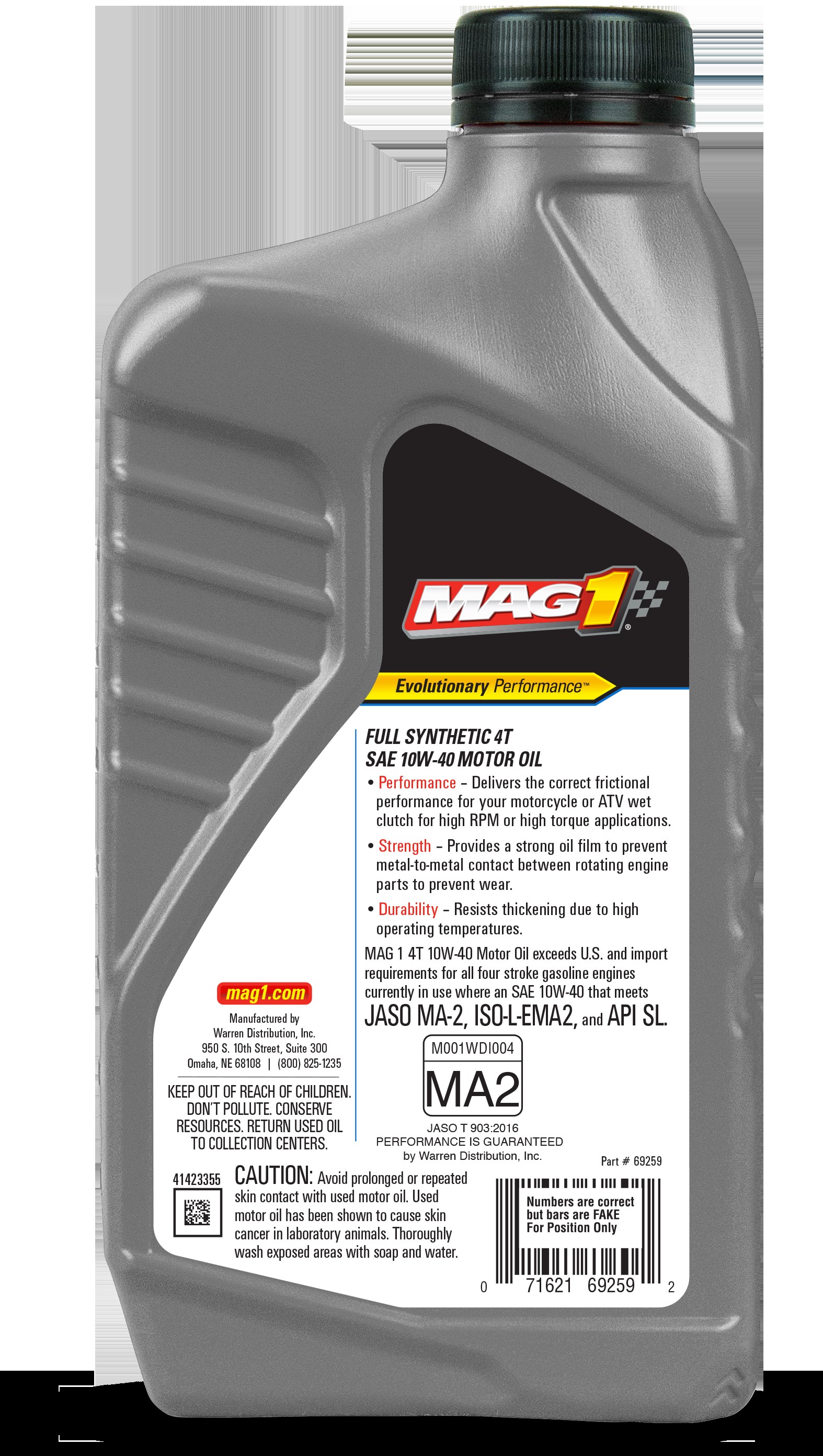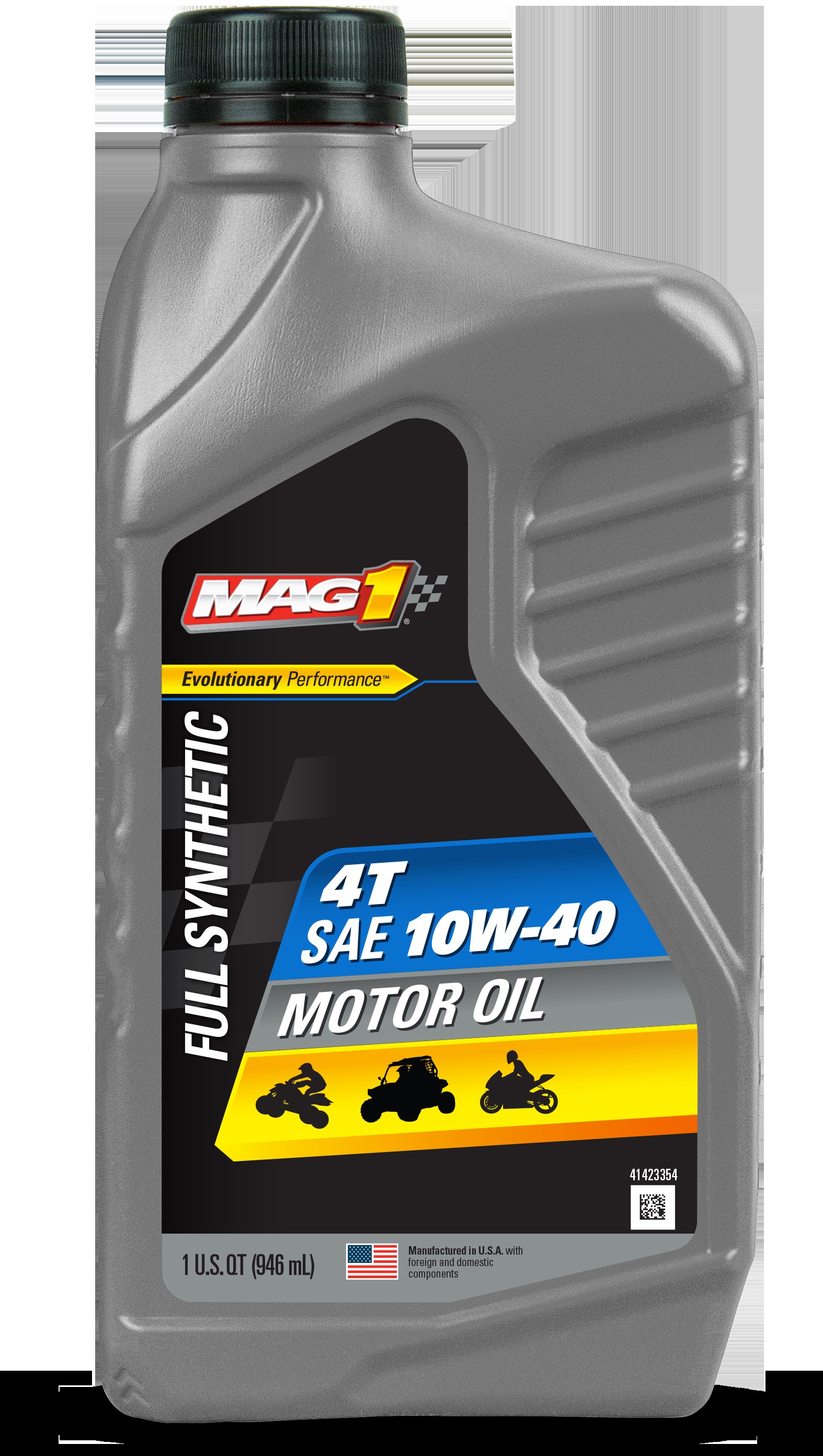 MAG 1 FULL SYNTHETIC 4T 10W-40 MOTOR OILMAG 1 Full Synthetic 4T Motor Oil is formulated with 100% synthetic base stock and FMX (Friction Management for Xtreme protection) technology for superior engine protection in four-stroke powersports engines with wet clutches.