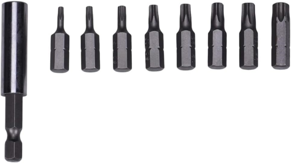 CENTURY 9-PIECE SECURITY STAR-DRIVE BIT SETTamper-resistant security star (Torx) insert bit set for driving security fasteners found in automotive, mobile home, and lawn and garden equipment. Made from premium S2 tool steel for long service life with both common and case-hardened screws.