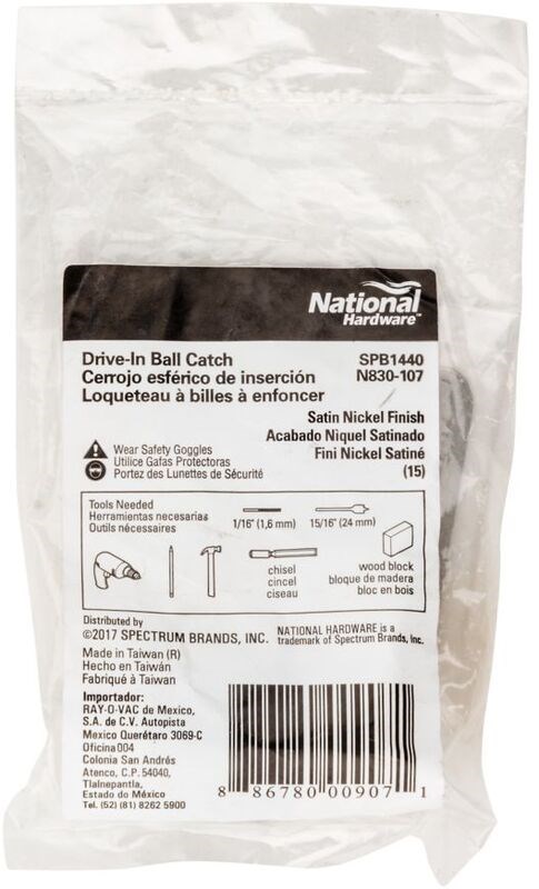 Drive-In Ball Catch for Cabinet Doors, Satin Nickel