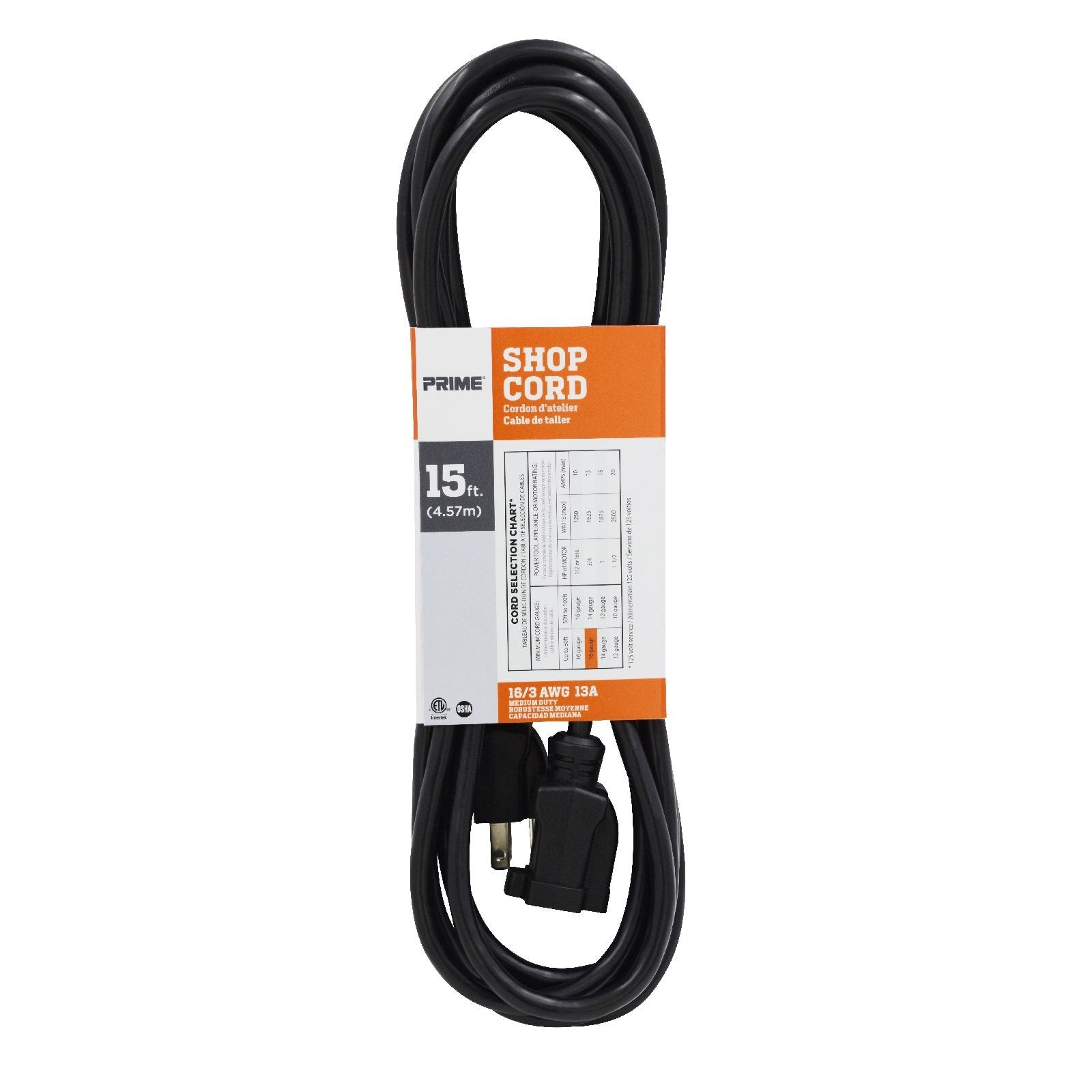 PRIME WIRE 16/3 SJTW OUTDOOR EXTENSION CORD - 15 FTDurable 16/3 SJTW outdoor extension cord from Prime Wire & Cable, rated for 13 amps at 125 volts. The weather-resistant vinyl jacket stays ultra-flexible from -40 to 140 deg F while resisting water, flames, and abrasion. Nickel-coated brass blades provide reliable, corrosion-free connections.