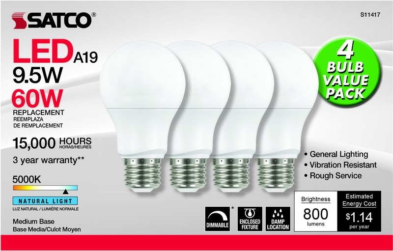 LED 4 Pack 9.5W 5k Dimmable Bulb
