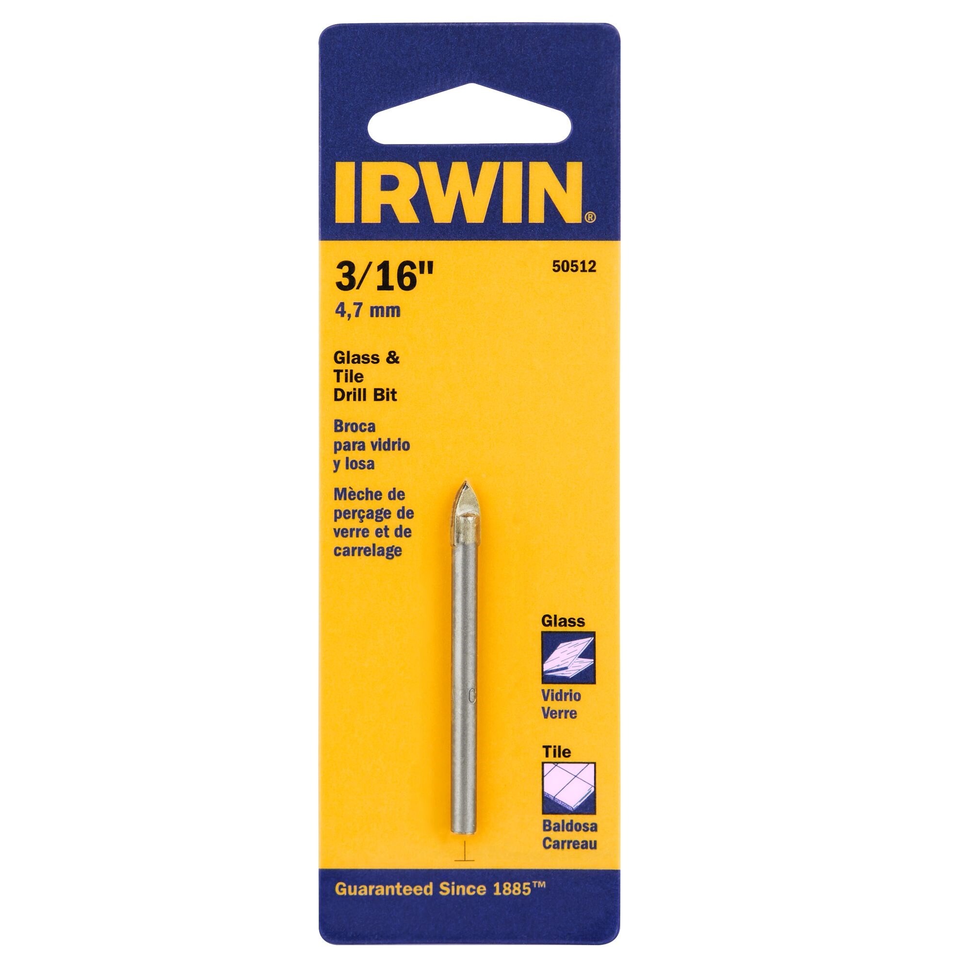 IRWIN GLASS AND TILE DRILL BIT 3/16"The Irwin 3/16" glass and tile drill bit features a precision-ground tungsten carbide spear point that cuts clean, round holes in glass, ceramic tile, mirrors, and marble without chipping or cracking. A versatile size for anchors, small mounting holes, and decorative work on fragile surfaces.