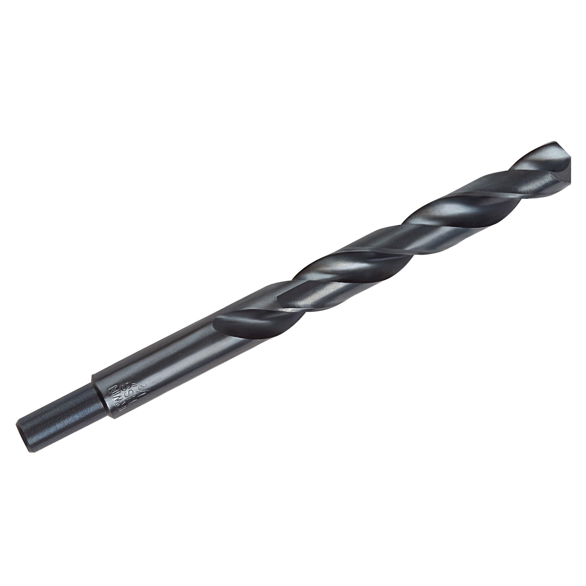 IRWIN BLACK OXIDE REDUCED SHANK DRILL BIT - 1/2"Irwin Black Oxide reduced shank drill bits are made from M-2 high speed steel for a combination of strength, heat resistance, and wear resistance. The black oxide coating provides corrosion protection, while the 135-degree split point starts true and eliminates bit walking.