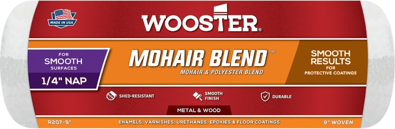 The Mohair shed-resistant white blended fabric provides good capacity and a very smooth finish with all paints, enamels, urethanes, epoxies and floor toppings. It combines the natural painting qualities of mohair with added resiliency of polyester for better production and coverage. Mohair fabric is great for smooth walls and surfaces.