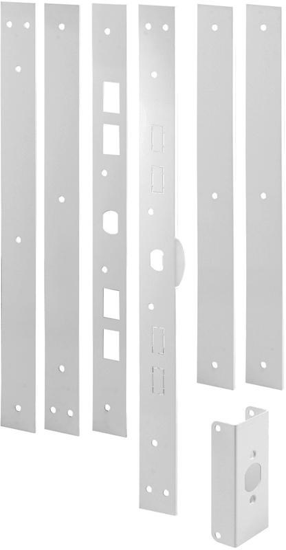 - Repair/reinforcement plates include knockouts for a variety of deadbolt spacings