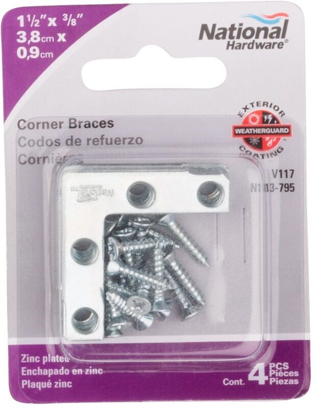 Flat Corner Brace - Zinc - 1 1/2 inches