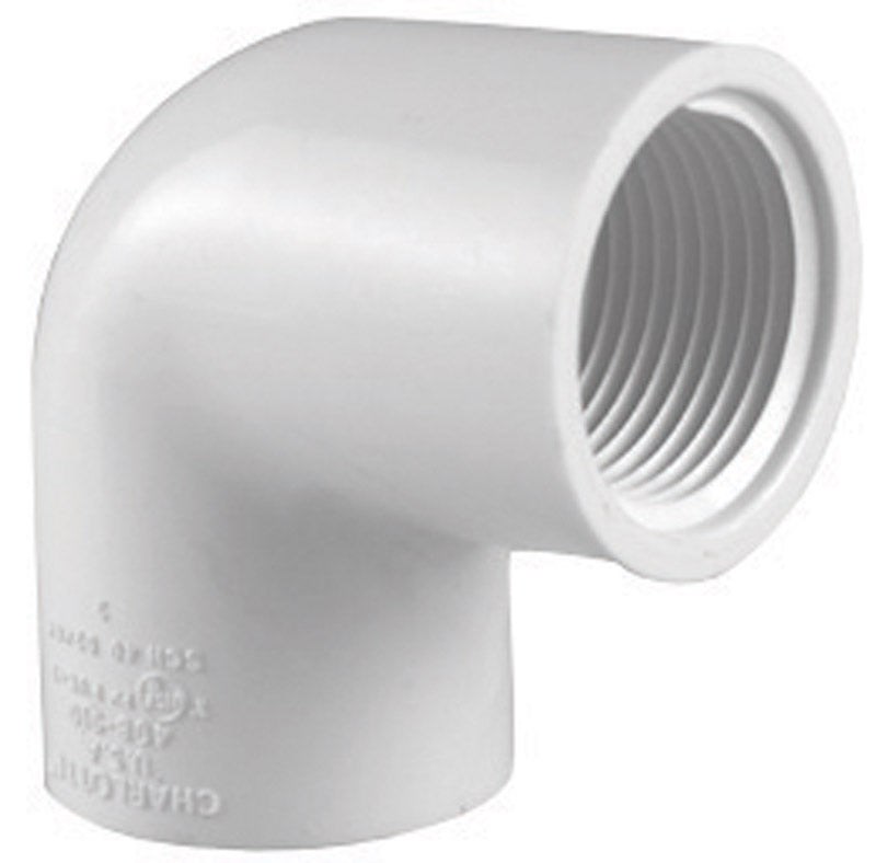 PVC SCHEDULE 40 90 DEGREE ELBOW, FPT X FPT - 1/2"This Charlotte Pipe PVC Schedule 40 90-degree elbow connects two runs of pipe at a right angle using female pipe thread (FPT) connections on both ends. Ideal for changing direction in pressure or drainage piping systems where threaded connections are needed.