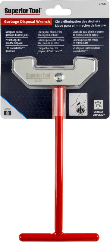 SUPERIOR TOOL GARBAGE DISPOSAL WRENCHThe Superior Tool garbage disposal wrench (37520) is specifically designed to free up jams in garbage disposals from above the sink. Heavy-duty alloy steel construction ensures long life and reliable performance.