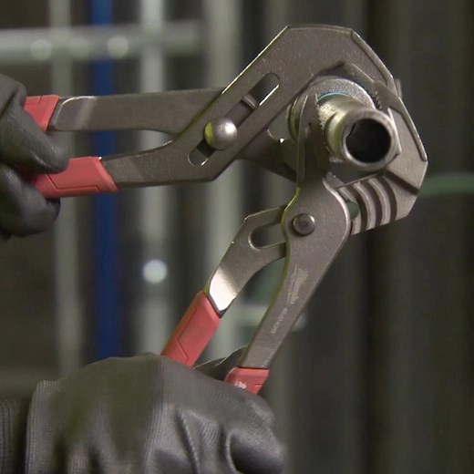 MILWAUKEE 12" COMFORT GRIP STRAIGHT-JAW PLIERSMilwaukee's 12" straight-jaw pliers are built for professional plumbers and tradespeople who need maximum grip and versatility. The reaming head handles up to 1-1/2" pipe, while the exposed metal handle ends double as a punching tool for knockout removal.