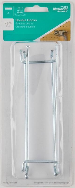 Straight Double Pegboard Hook, Zinc ~ 6 inch
