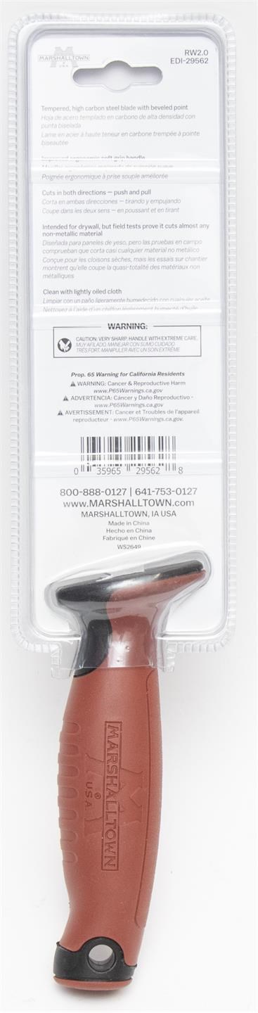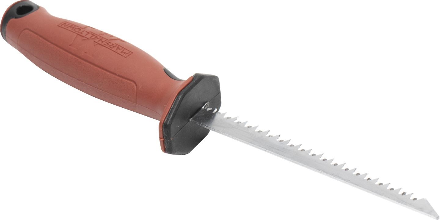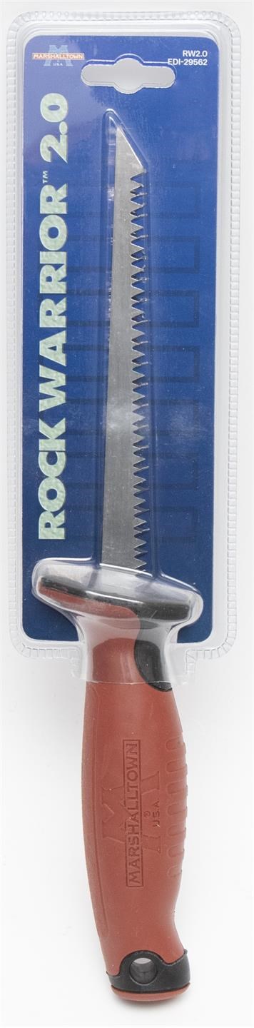MARSHALLTOWN ROCKWARRIOR DRYWALL UTILITY SAWThe Marshalltown RockWarrior utility saw is optimized for cutting drywall and other non-metallic materials quickly and accurately. The tempered high carbon steel blade features a beveled point that pierces drywall cleanly without needing a pilot hole, saving time and effort on plunge cuts. The bi-directional design cuts on both push and pull strokes for faster material removal, and the improved ergonomic soft grip handle reduces hand fatigue during extended cutting.