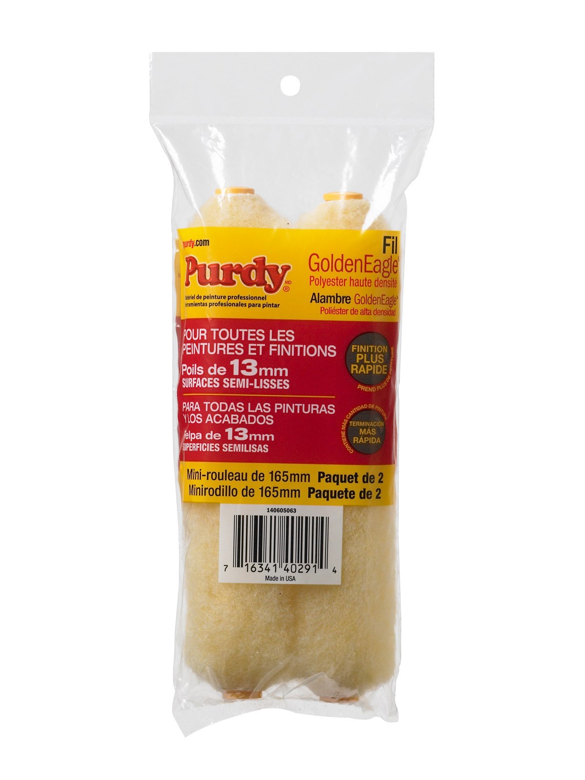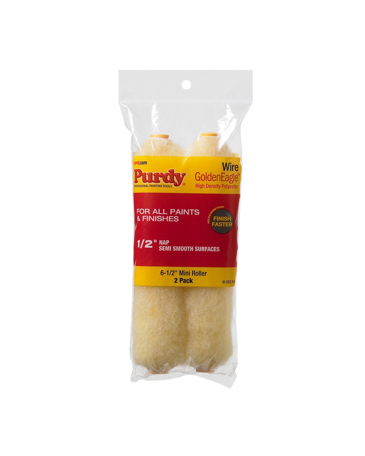 PURDY GOLDEN EAGLE MINI ROLLER COVER - 1/2" NAP, 2-PACKThe Purdy Golden Eagle mini roller cover delivers smooth, even coverage with all latex and oil-based paints and stains. The high-density knitted polyester fabric provides excellent pickup and release for a consistent finish on smooth to semi-rough surfaces.