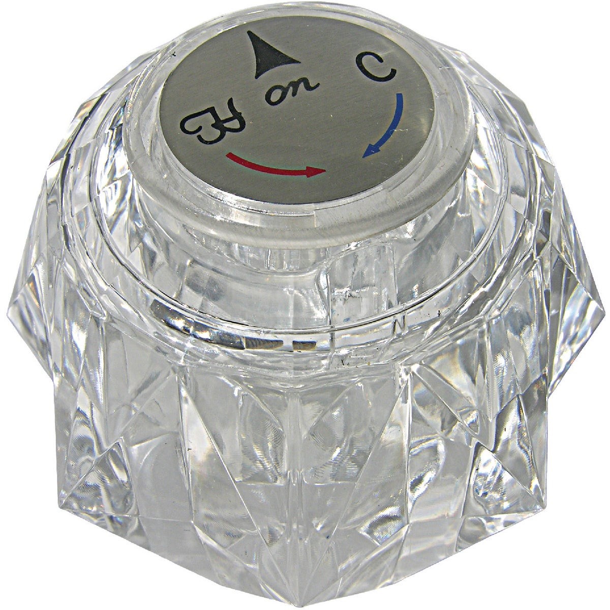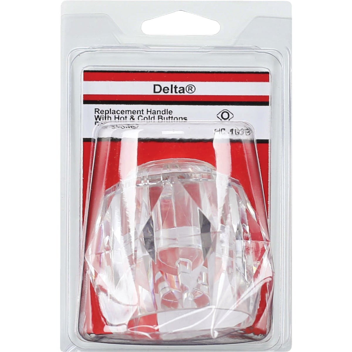 DELTA 1-3/4" CLEAR TUB/SHOWER HANDLE WITH BUTTONReplacement clear acrylic handle for Delta single-lever tub and shower faucets. The larger 1-3/4" size replaces Delta part #RP2391. Features a diamond broach that fits Delta single-lever stems.