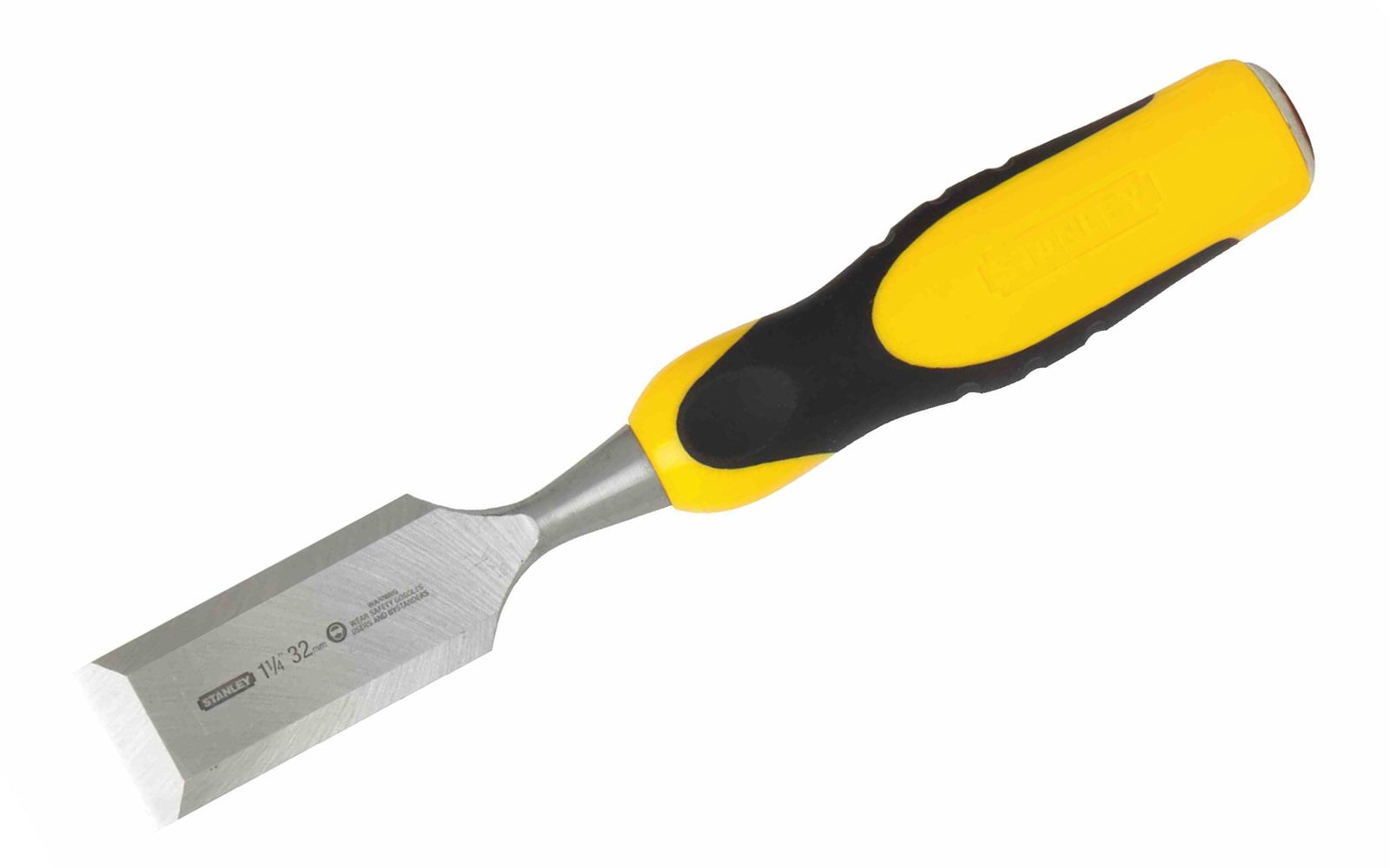 STANLEY 16-SERIES BI-MATERIAL WOOD CHISELThe Stanley bi-material wood chisel features a hardened and tempered chrome carbon steel blade ground for edge retention. The short series blade design provides added strength and control, while the impact-resistant bi-material handle withstands hammer strikes.
