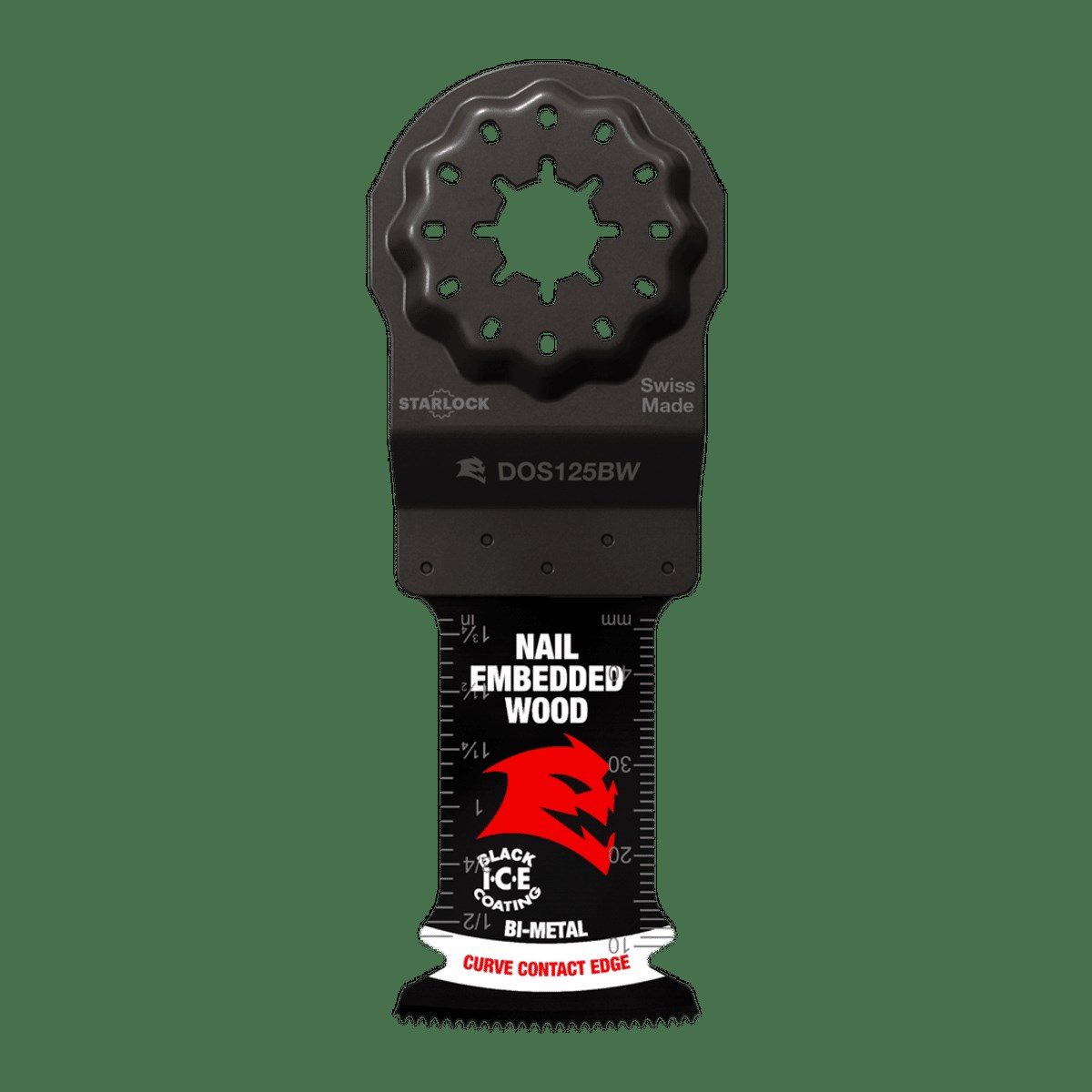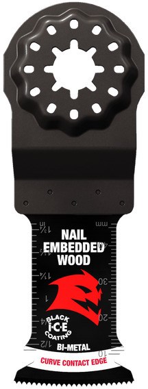 Diablo Demo Demon Starlock Bi-Metal Oscillating Blades deliver aggressive cutting performance on wood with nails, screws, and other embedded materials. The ultra-hardened cutting edge provides maximum blade life, while the curved contact edge ensures full cutting engagement for faster, cleaner cuts. Black I.C.E. coating protects the cutting edge from heat and friction to extend blade longevity. The Starlock mounting system provides maximum power transfer from tool to blade. Includes 10 blades per pack.