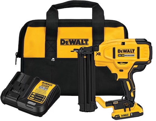 DEWALT 20V MAX XR 18-GAUGE CORDLESS BRAD NAILER KITThe DeWalt DCN680D1 is a 100% battery-powered 18-gauge brad nailer that eliminates the need for a compressor, hose, or gas cartridges. Drives 18-gauge brad nails from 5/8" to 2-1/8" with a 110-nail magazine. Delivers 800 to 1,200 nails per charge - ideal for decorative molding, casing, and shoe molding.