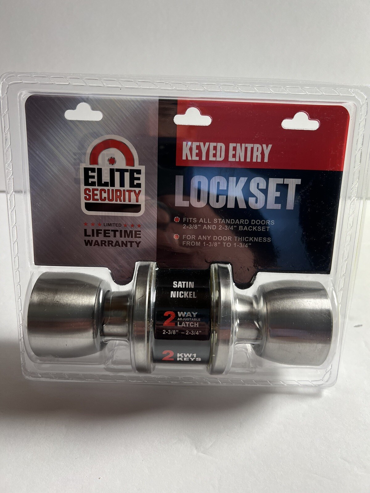 Elite Security Keyed Entry Ball Knob Lockset - Satin NickelKeyed entry ball knob lockset for exterior doors. Features a classic ball knob design with a satin nickel finish that resists fingerprints and complements a wide range of decor styles. Includes iron nickel-plated keys for added durability.