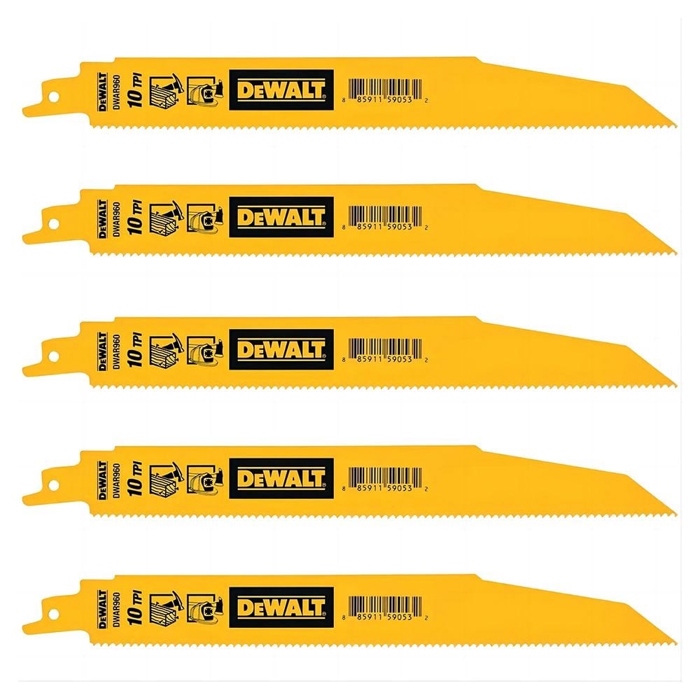 DEWALT DEMOLITION BI-METAL RECIPROCATING SAW BLADE - 9" 10 TPIDeWalt's DWAR960 demolition reciprocating saw blade is built for tearing through nail-embedded wood and mixed demolition materials. The longer 9" blade provides extended reach for cutting through thicker framing lumber and structural members. Bi-metal construction combines high-speed steel teeth for cutting hardened nails with a flexible spring-steel body that resists snapping under aggressive use.