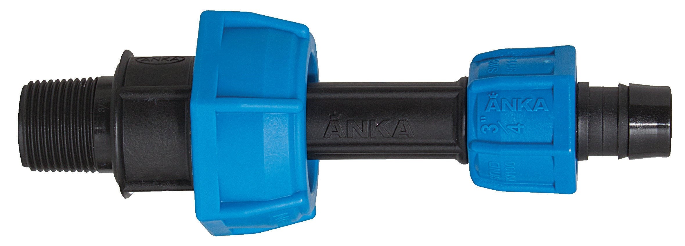 WATTS ANKA REINFORCED NYLON PUMP UNION - 3/4"Glass fiber reinforced nylon pump union with male NPT threaded inlet and barbed outlet with Easy Grip captive nut. Designed for connecting pumps, valves, and plumbing fixtures to polyethylene pipe, tubing, and hose. Non-corrosive and UV stabilized for reliable above-grade and below-grade installations.