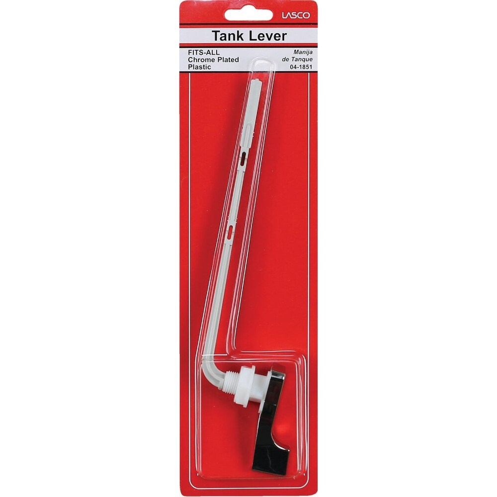 FIT-ALL UNIVERSAL TOILET TANK LEVER - CHROMEUniversal replacement flush lever designed to fit most front-mount toilet tanks. The bendable plastic arm can be cut and shaped to match your toilet configuration.