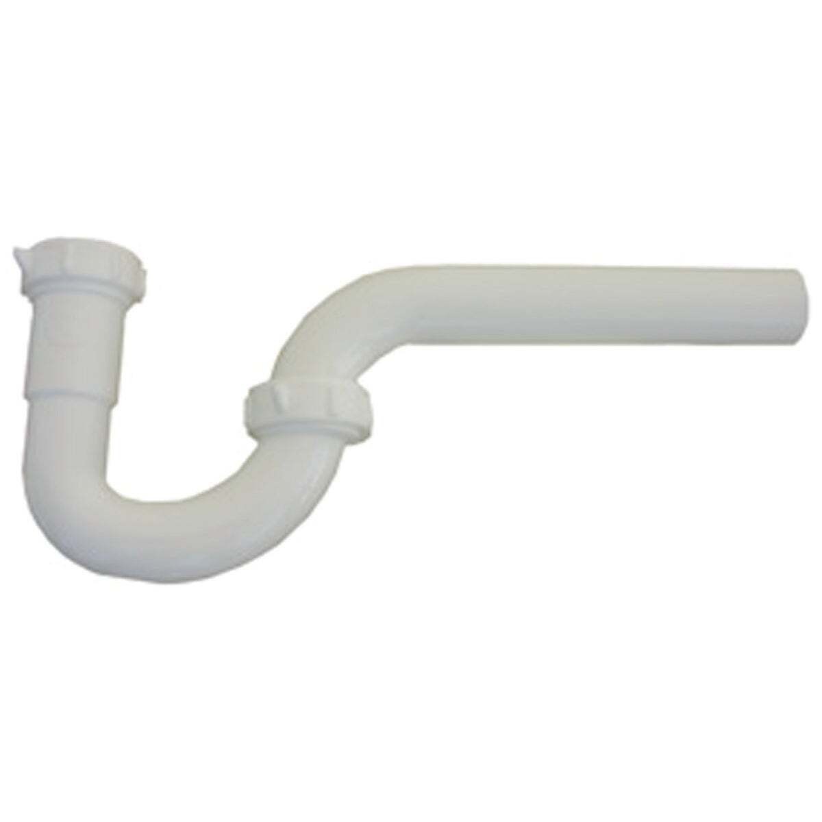 White PVC wall drain P-trap designed for lavatory sink applications. This slip joint P-trap includes all necessary nuts and washers for a complete installation.