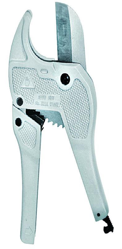 The PVC & Hose Cutter makes professional quality cuts through PVS, CPVC and Polyethylene up to 1-5/8 in diameter. The extended handles provide extra leverage for tough cuts. The six-click ratchet holds the blade while you adjust your grip to increase pressure.