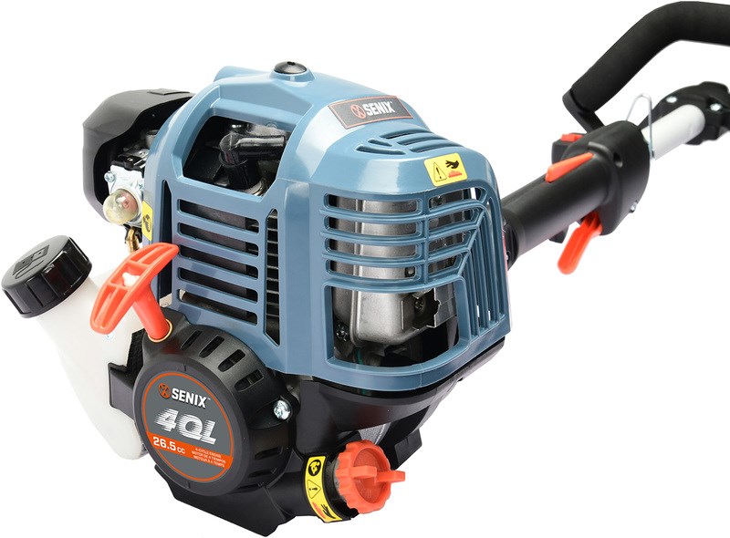 SENIX 4QL 4-CYCLE CURVED SHAFT STRING TRIMMERTrim grass and weeds around your yard with the Senix 4QL curved shaft string trimmer. The 26.5cc 4-cycle full-crank engine delivers reliable power without mixing gas and oil. The curved shaft design provides better reach under shrubs and around obstacles.