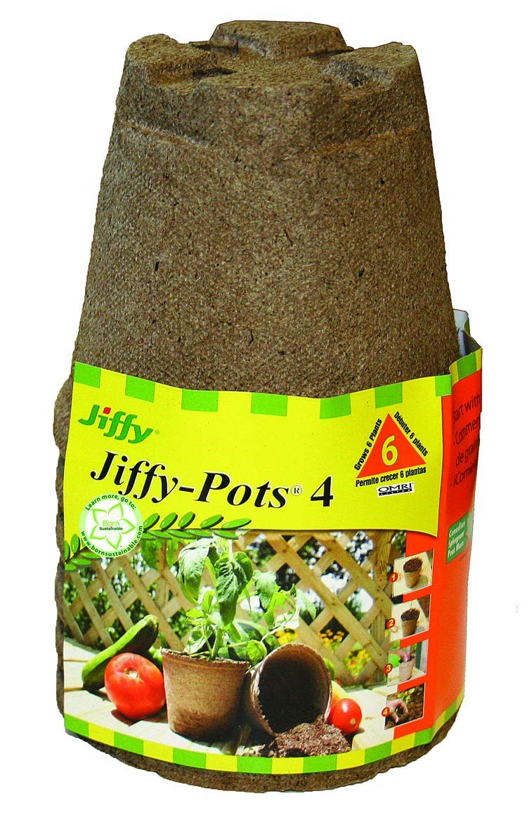 JIFFY 4" BIODEGRADABLE PEAT POTS - 6 PACKJiffy peat pots make transplanting seedlings and young plants simple and stress-free. When plants are ready for the garden, transplant the pot directly into the ground -- roots grow right through the biodegradable peat walls, eliminating transplant shock and reducing planting time. OMRI listed and approved for use in certified organic gardening programs.