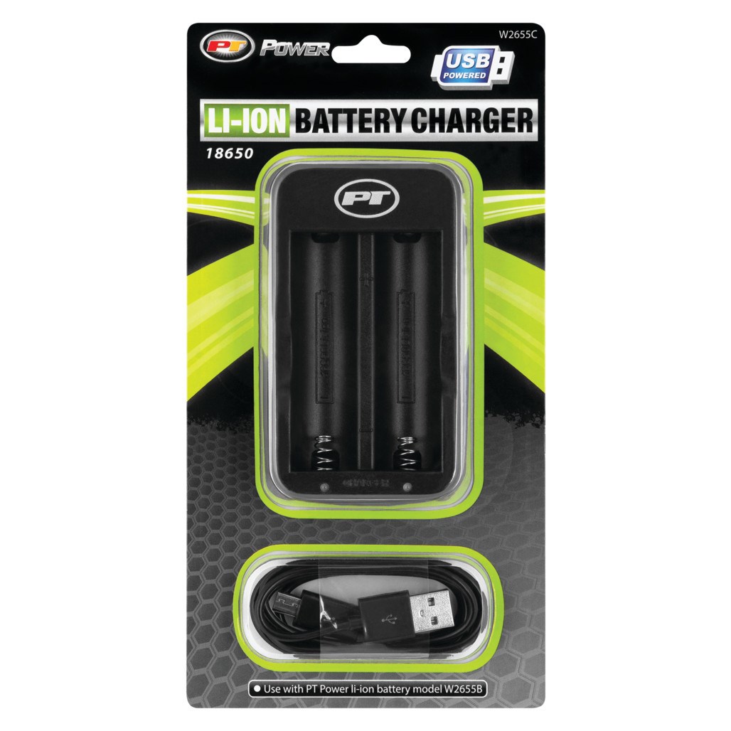 DUAL USB LITHIUM-ION BATTERY CHARGERCharge two standard lithium-ion batteries simultaneously with this compact USB-powered charger from Performance Tool. The charger automatically stops when charging is complete to prevent overcharging, and the included 39" micro USB cable makes it easy to connect to any USB power source.