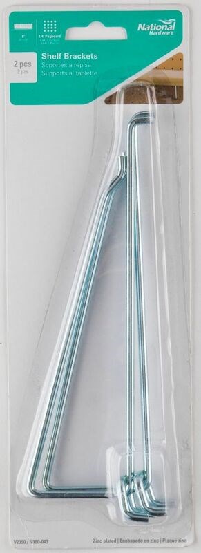 NATIONAL HARDWARE PEGBOARD SHELF BRACKET, ZINC PLATED - 8"This National Hardware 2390 series shelf bracket provides sturdy support for shelving on 1/4" pegboard. The galvanized steel construction offers excellent corrosion resistance for long-lasting durability in garages, workshops, and storage areas.