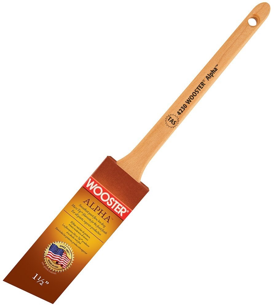 WOOSTER ALPHA THIN ANGLE SASH BRUSH - 1-1/2"The Wooster Alpha is made with a one-of-a-kind filament blend designed to carry more paint at the end of the brush, releasing evenly to the surface for less effort while painting. Micro Tip technology delivers a finer finish with the smoothest flow and minimal drag. The brush cleans quickly when the job is done.