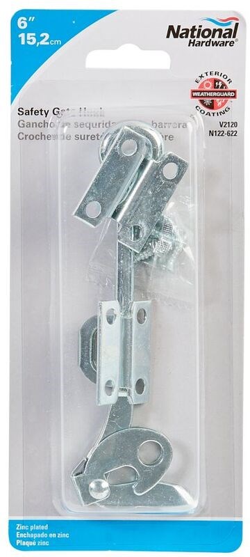 A heavy duty safety hook designed for gates, doors and other applications where positive latching is desired.