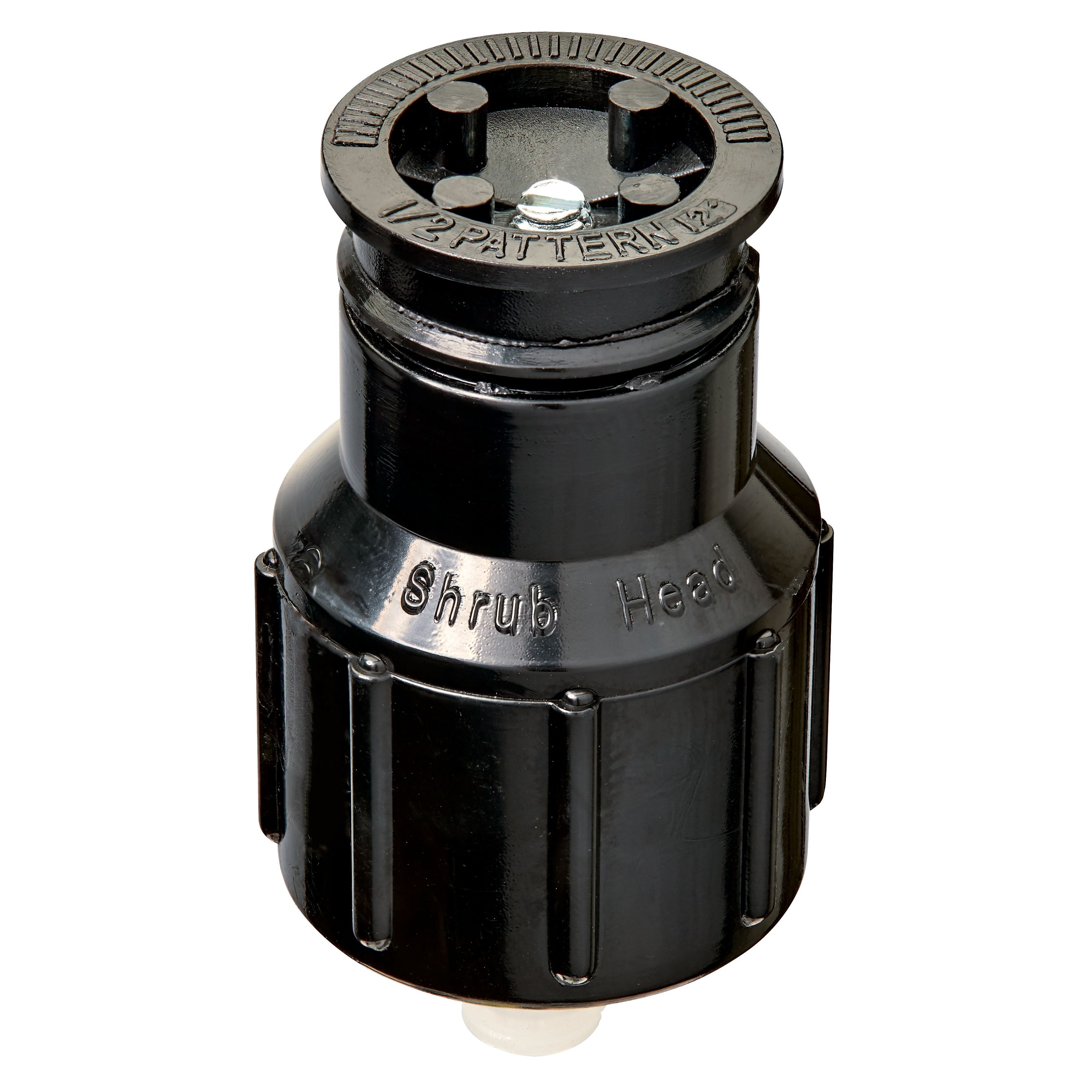 ORBIT PLASTIC SHRUB HEAD SPRINKLER - HALF PATTERNThe Orbit Plastic Shrub Head Sprinkler delivers reliable, even coverage in a 180-degree half-circle spray pattern. Designed for installation on a 1/2" MPT rigid PVC riser, this fixed-nozzle sprinkler is ideal for watering shrub beds, flower beds, and ground cover areas.