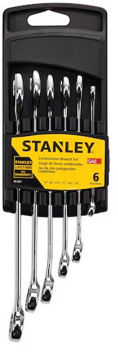 STANLEY 6-PIECE SAE COMBINATION WRENCH SETProfessional-quality combination wrench set for standard SAE fasteners. Chrome vanadium steel construction provides excellent torque, strength, and durability for demanding applications.