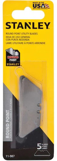 STANLEY ROUND POINT SAFETY UTILITY BLADES - 5 PACKStanley 11-987 Round Point Safety Utility Blades feature a rounded tip design that reduces the risk of accidental cuts and helps prevent damage to carton contents when opening boxes. These high-quality blades fit most standard utility knives.