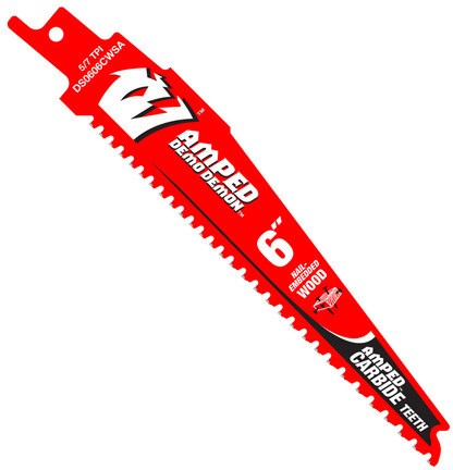 DIABLO AMPED DEMO DEMON RECIP BLADE - 6", 5/7 TPI, 3-PACKThe Diablo Amped Demo Demon 6" carbide-tipped reciprocating saw blade is built for nail-embedded wood demolition in tight spaces. Featuring TiCo Hi-Density carbide teeth and the industry-first Black I.C.E. coating, this compact blade delivers up to 50X longer cutting life with faster cuts through framing lumber, pallets, and remodeling tear-outs where nails are present.