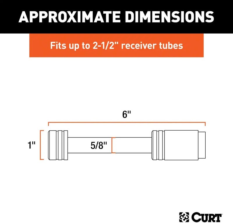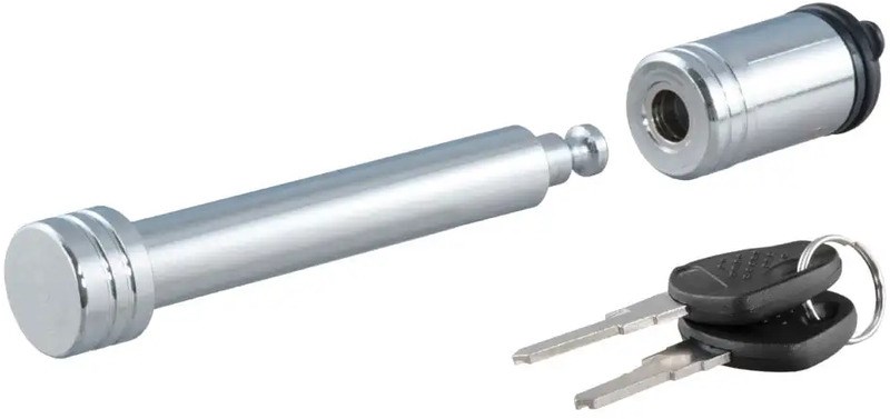 CURT BARBELL HITCH LOCK - CHROMESecure your ball mount with this Curt chrome barbell-style hitch lock. The 5/8" pin diameter fits both 2" and 2-1/2" receiver tubes, making it compatible with Class 3 and Class 4 hitches.