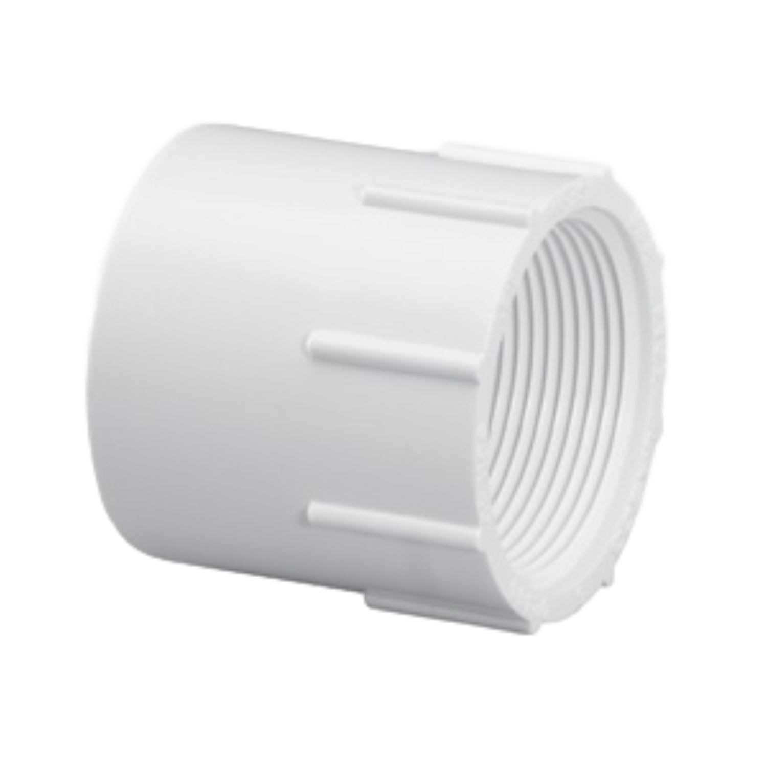 CHARLOTTE PIPE PVC SCHEDULE 40 FEMALE ADAPTER - 3/4" x 1/2"This Charlotte Pipe PVC Schedule 40 reducing female adapter connects 3/4" PVC slip (socket) pipe to a 1/2" female pipe thread (FPT) connection. Use PVC primer and solvent cement on the slip side; the threaded end accepts standard male pipe thread (MPT) fittings with PTFE thread tape for a secure seal.