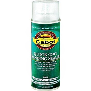 Cabot Interior Sanding Sealer Spray - Th is finish sands easily, without gumming the sandpaper 15-30 minutes after application.  The result is an exceptionally smooth wood surface ready for finishing with Cabot clear spray finishes.