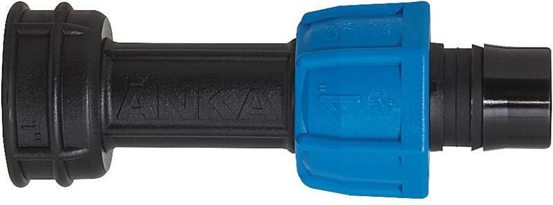 • Barb fitting inlet & outlet w/ captive blue nut