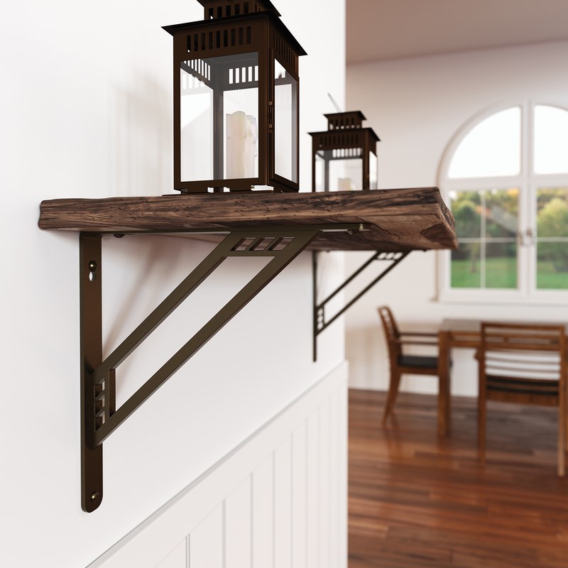 12" bracket is designed to accommodate shelf depths of 10" to 14" and is commonly used for the following interior design styles: Arts & Crafts, Art Deco and Rustic decor