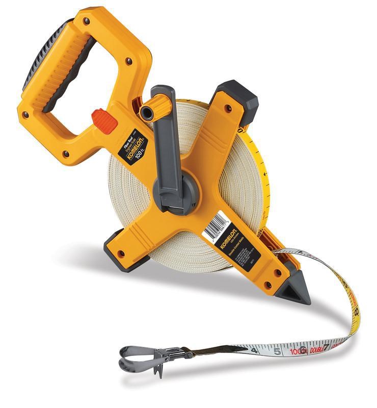 Komelon's open reel fiberglass tapes are perfect for all of your long measuring needs. The double coated fiberglass blade is waterproof and dirt resistant. The coating also protects the markings and graduations from chemical and mechanical abrasion. In addition to a heavy duty abs frame, this tape has a two color blade with double sided printing (engineer scale on back of blade) and a versatile ring end hook and claw. The 6611 is great on any jobsite or athletic field.