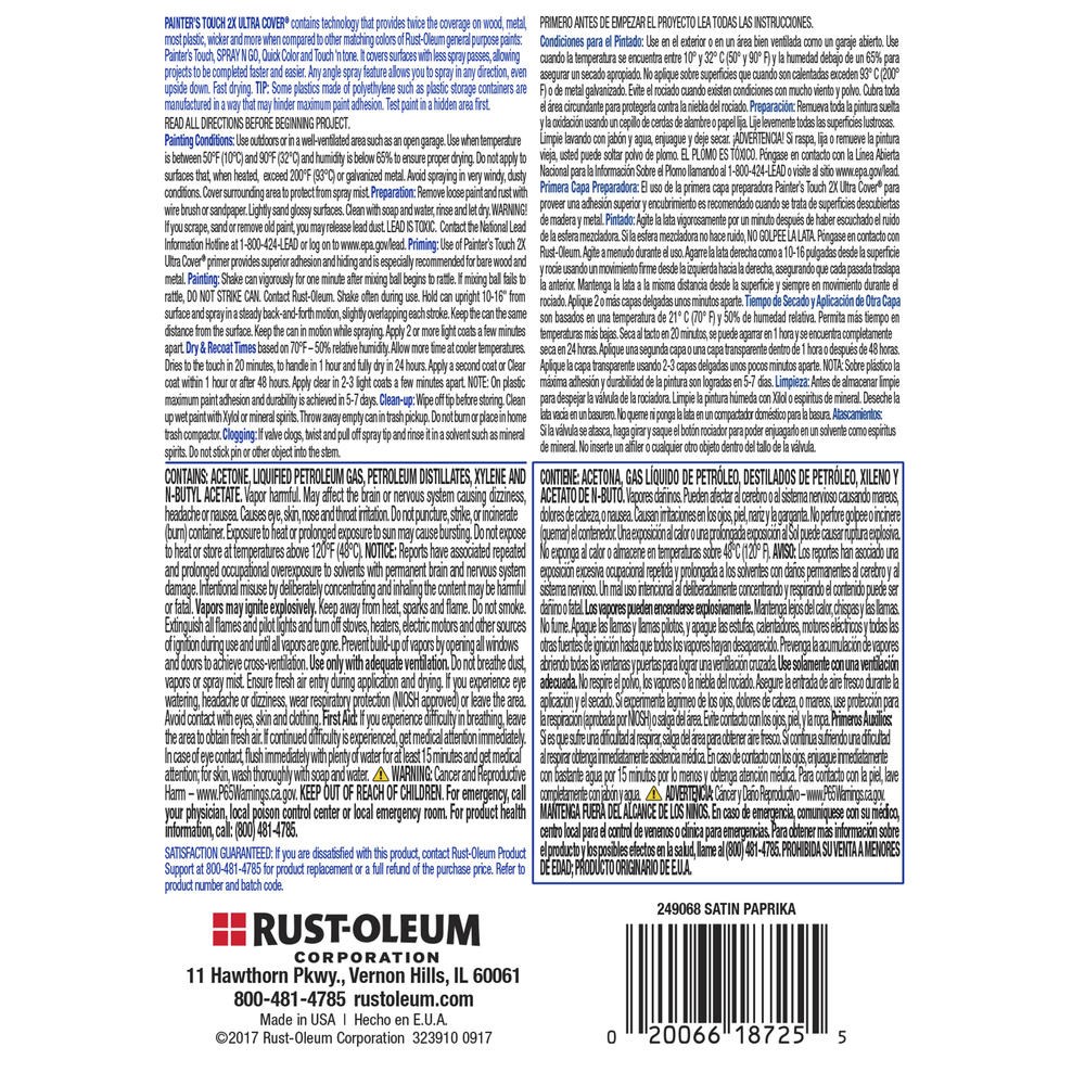 Painter's Touch Ultra Cover 2X Spray, Paprika Satin - 12 oz