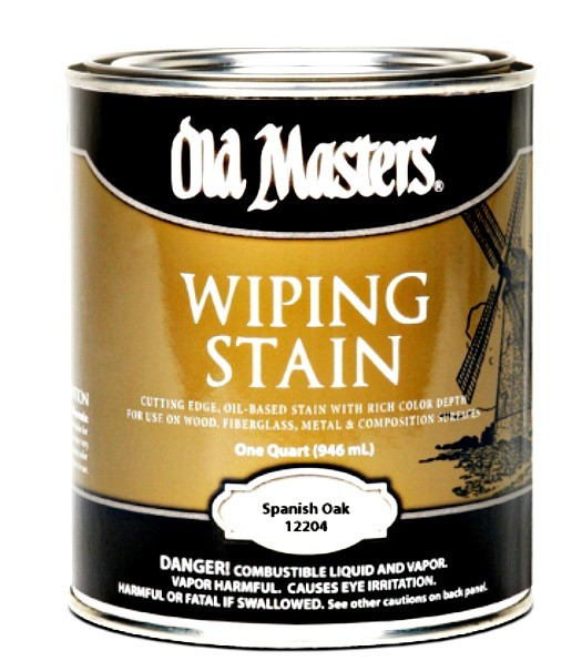 Old MastersĀ® Wiping Stain is a robust, oil-based masking stain for use on wood, fiberglass, metal and composition surfaces. This stain can also be used in wood graining or as an antiquing glaze over painted surfaces. Its thick, rich formula allows easy application and superior color control, necessary to achieve rich, uniform color on most surfaces in a single application. For interior use and suitable for exterior use when top coated with a protective clear finish.
