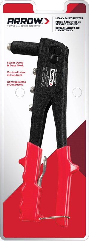 Arrow’s RH200S riveter is a great all-purpose rivet tool for both professional and DIY rivet applications. The extended nose design helps with tight corners or when a little extra reach is needed in the work area. The RH200S also features tough and durable steel construction, spring loaded handles, soft vinyl hand grips, 4 different size nose pieces, a nose changing. Uses 4 rivet sizes: 3/32-inch, 1/8-inch, 5/32-inch, and 3/16-inch.