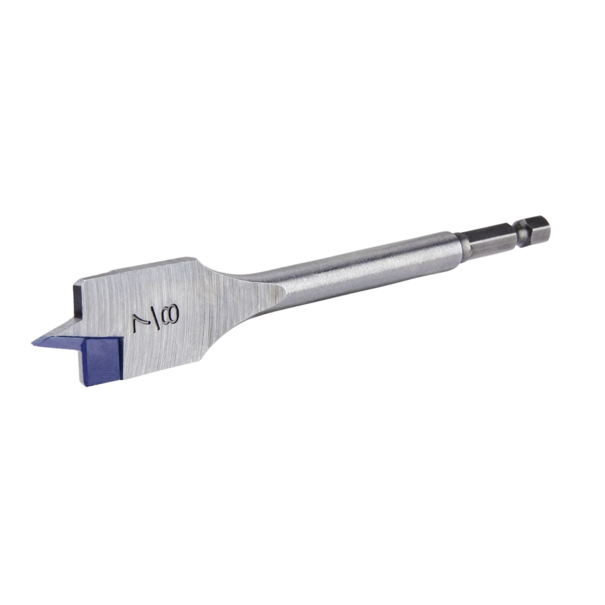 IRWIN SPEEDBOR WOOD SPADE BIT - 7/8"Drill clean, fast holes in wood with the Irwin Speedbor spade bit. The Blue-Groove point and cutting edge provide faster chip removal, drilling up to 4x faster than standard spade bits. Double cutting spurs scribe the outside of the hole before chips are made, reducing breakout and producing a smoother finish.