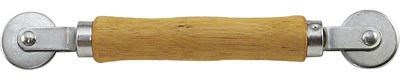 Combination tool with wood handle; steel convex and concave rollers; used to install most screening materials and vinyl spline into window screen frame.